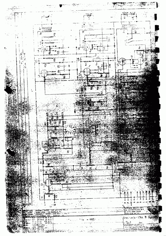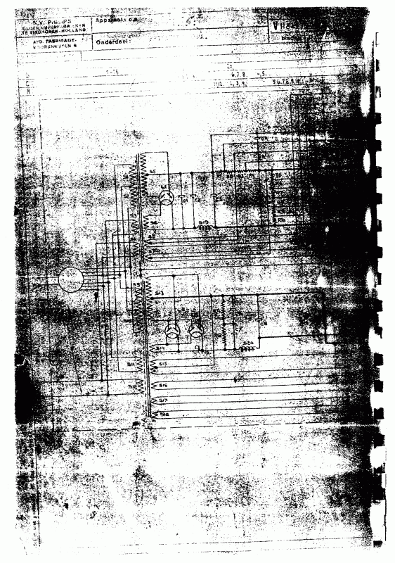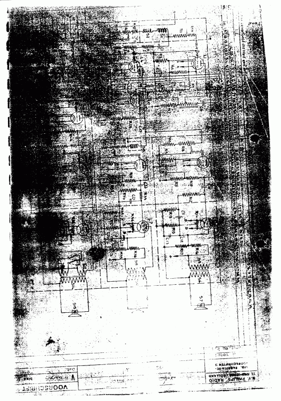 van een enorme berg Philips documentaties zaten ook schemas van een groot luxe apparaat uit het midden van de jaren '30.Na even zoeken op de server heb ik het gevonden.Ik ben voor 99 procent zeker dat het om hetzelfde apparaat gaat,een uitgebreid ontvangdeel en 3 versterkers waarvan een als balanseindtrap.