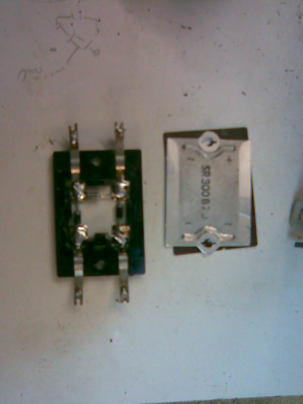 Het is niet de gelijkrichter die't probleem is. Die is al losgekoppeld, nu was het gewoon die vermogenweerstand die roodgloeiend stond..