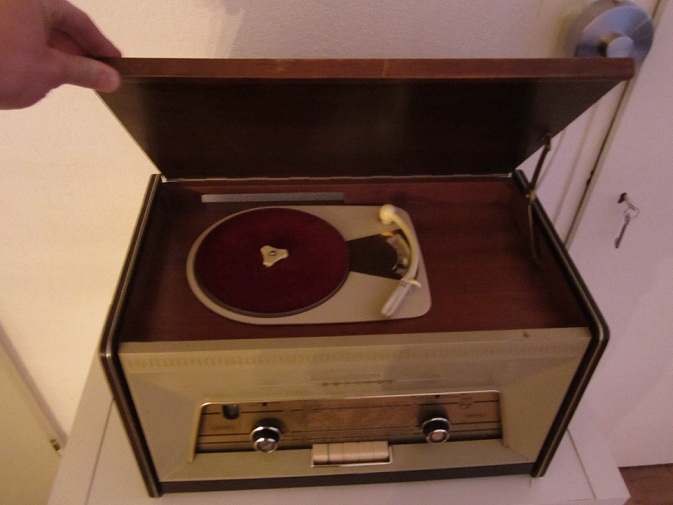 Nu Hebben wij de kast weer in de woonkamer gezet en spelen weer van ouds de lps van mijn vader en moeder af.