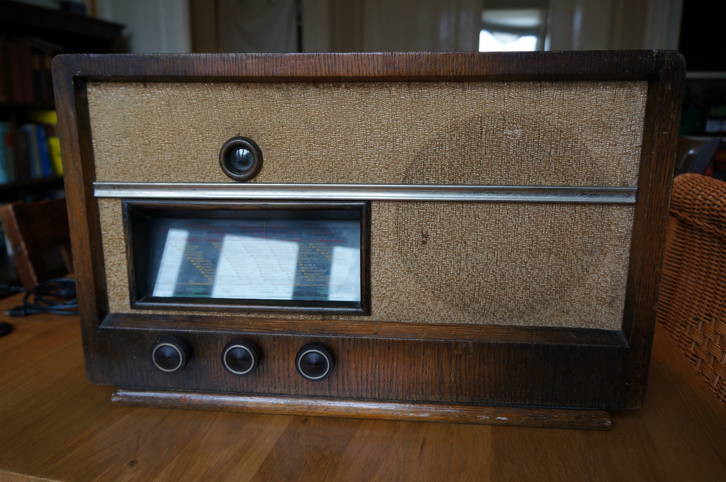 Ik heb de oude radio die naar wat ik begreep, mijn opa en oma in 1946 hadden gekocht voor hun bruiloft, na 10jr overlijden weer tevoorschijn gehaald.