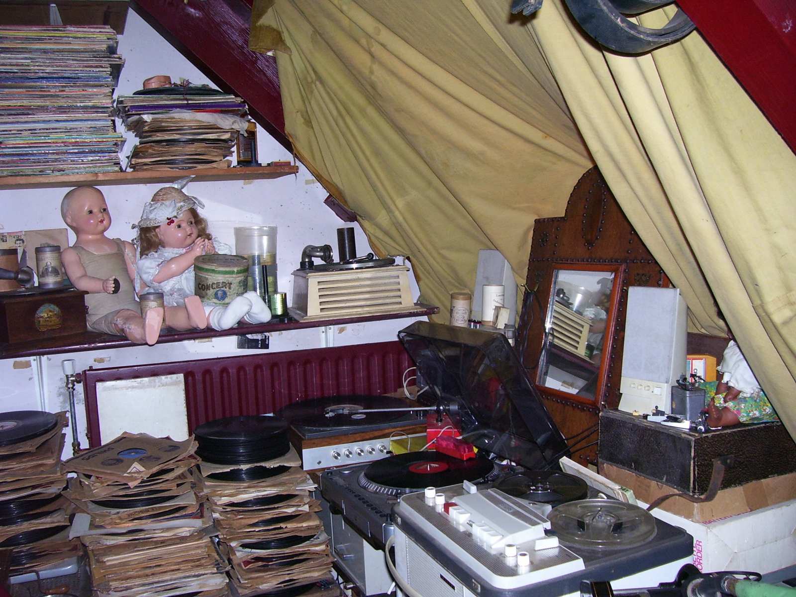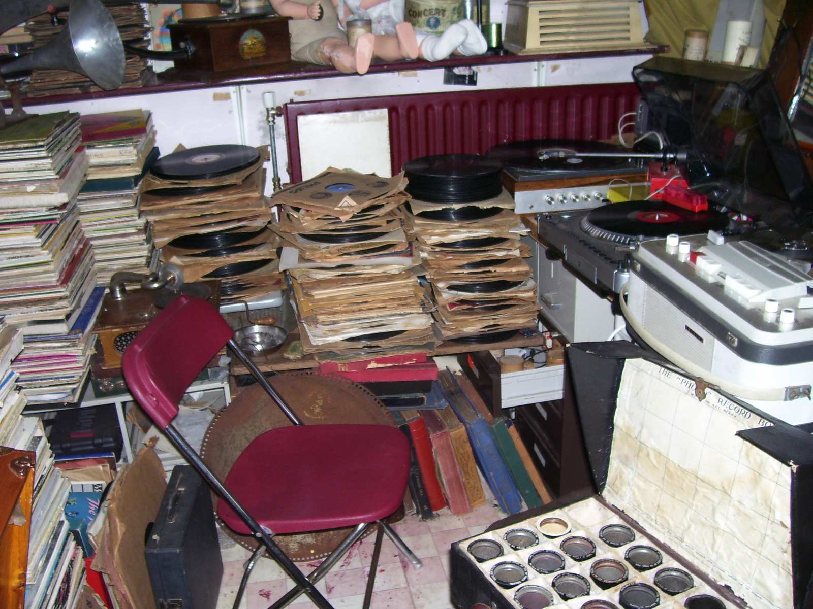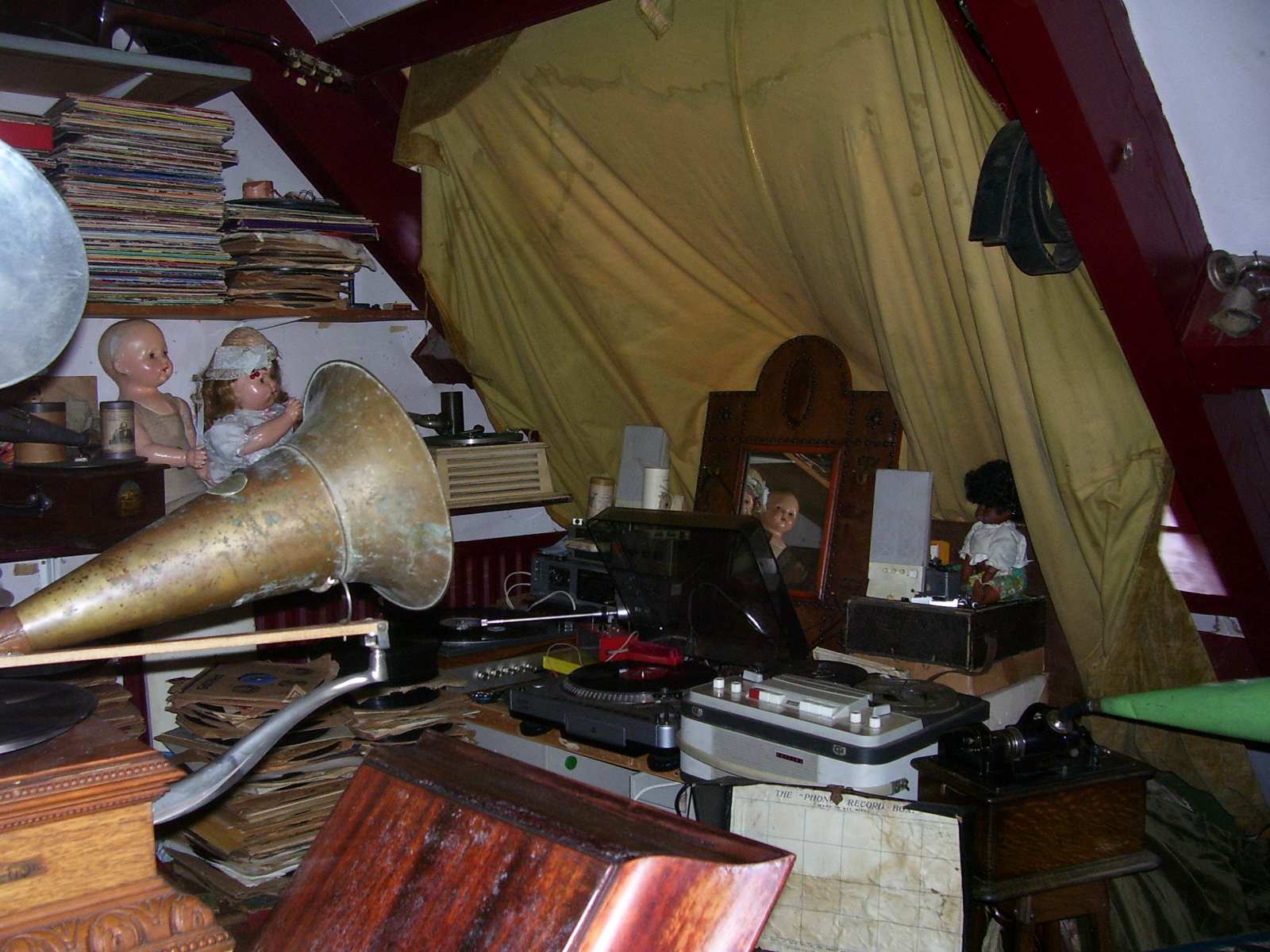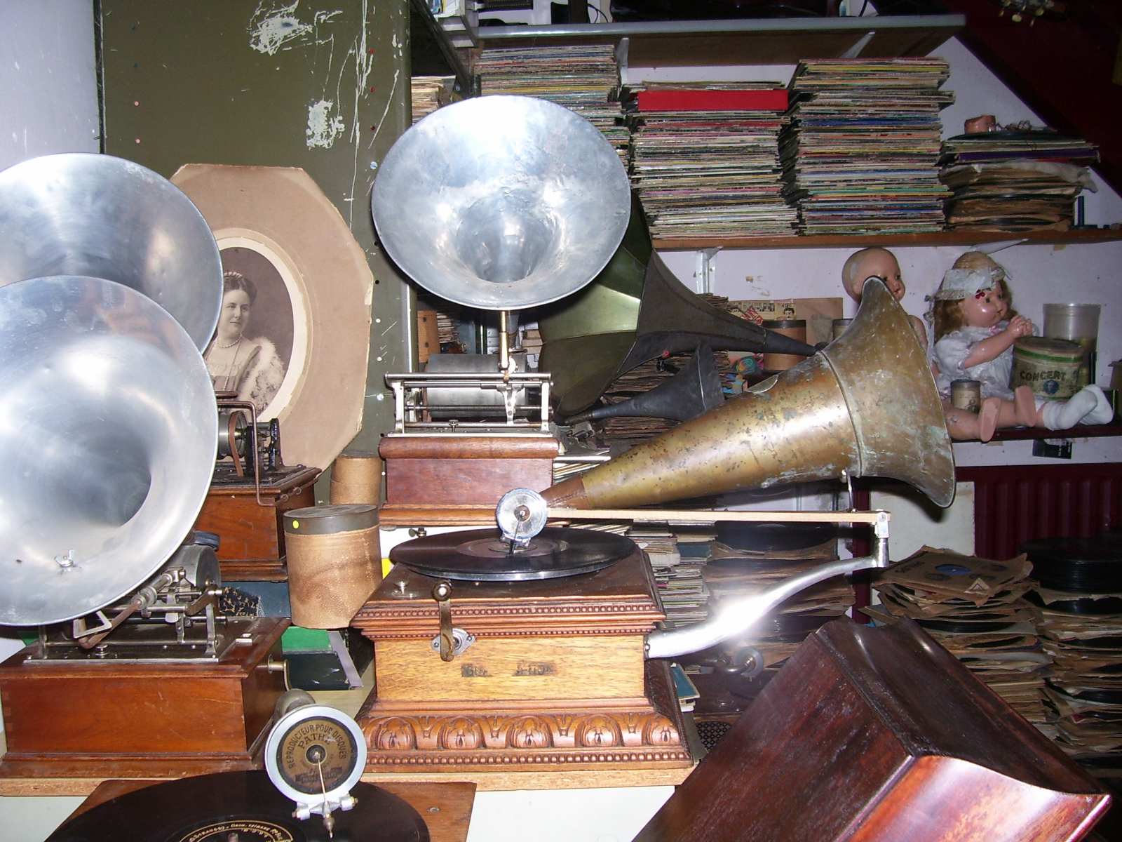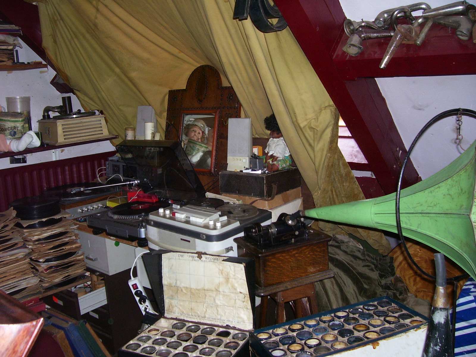 ik ben nu wat meer voor een "show" element gegaan voor mijn studiotje de rommel op de grond is weg en ik voel me nu minder een slons dan voorheen je ziet wel dat ik van "vol!!" hou ook is de platenspeler voor zeer grote platen pernement toegevoegd in mijn studio omdat de vraag voor tranfers van vitaphone en radio transcription discs steeds groter word maar dit is maar de helft van de kamer de andere helft moet nog gedaan worden ook gaan er niet aan gramofoons gerelateerde artikelen in de verkoop om ruimte te maken voor meer gramofoons die er aan zitten te komen ik hou julie op de hoogte