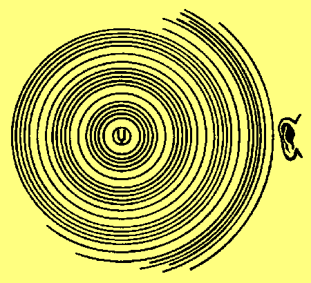 de bovenstaande proef geeft een goed beeld hoe de individuele sectie van een geluids golf zig gedraagt maar geeft niet het complete beeld van geluids bron tot ontvanger(oor) ik heb geleerd dat geluid zich voortplant als kringen in een vijver nadat je er een steentje in gegooid hebt