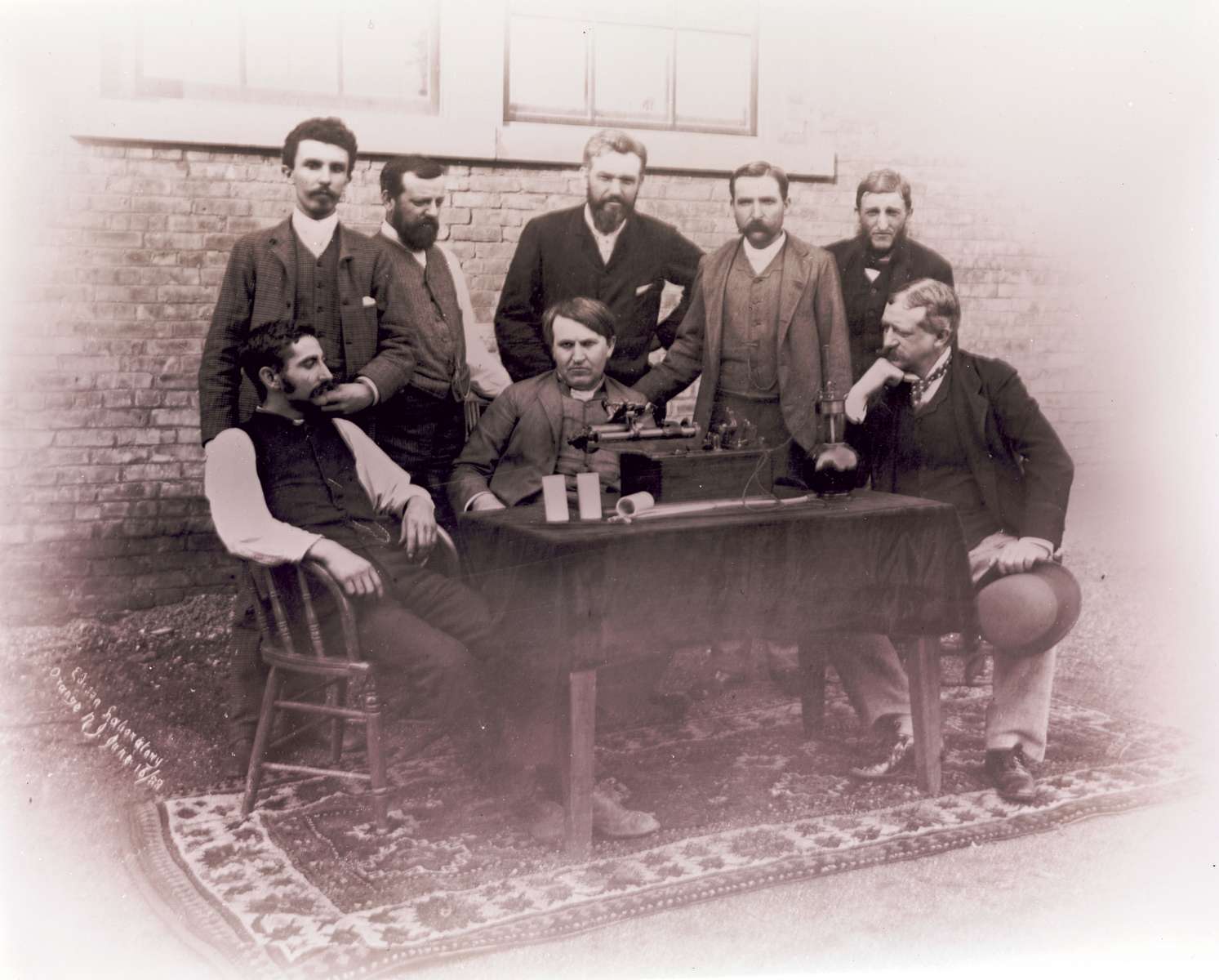 Wel te ruste Mr Edison 1877. Tussen de grammofoons op een matras?