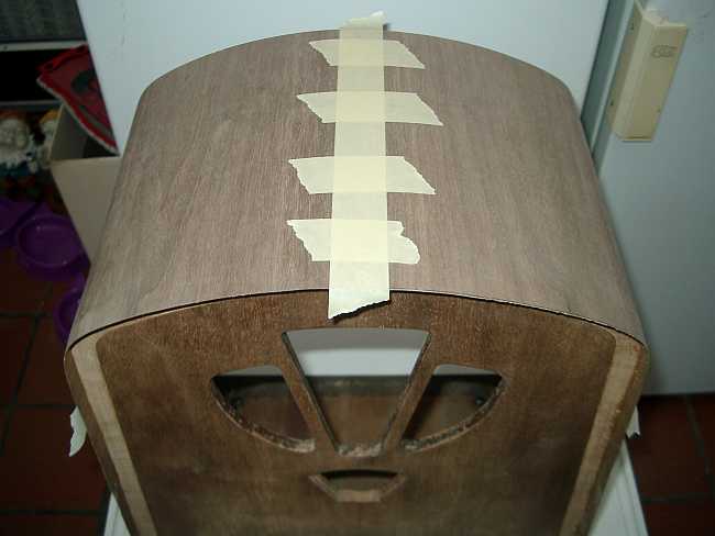 Na het aanbrengen van een verdunde laag polyurethaanvernis gevolgd door een poriënvuller.Na het slissen werden nog 4 lagen vernis aangebracht en werden de voetsteunen zwart geschilderd.