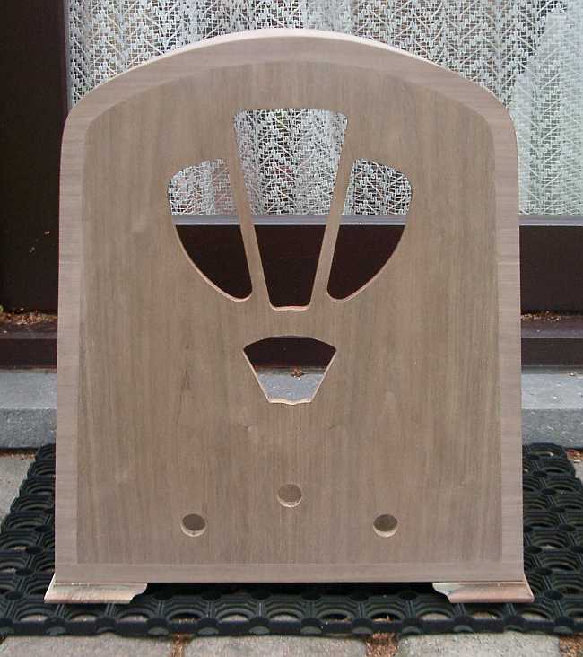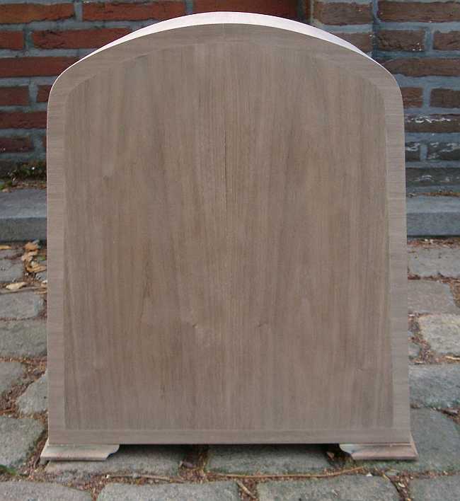 De kast van de Siera S5S heb ik zelf gefineerd.Het notelaarfineer moest symmetrisch aangebracht worden.Daarvoor kocht ik 4 repels fineer gesneden uit dezelfde plank.