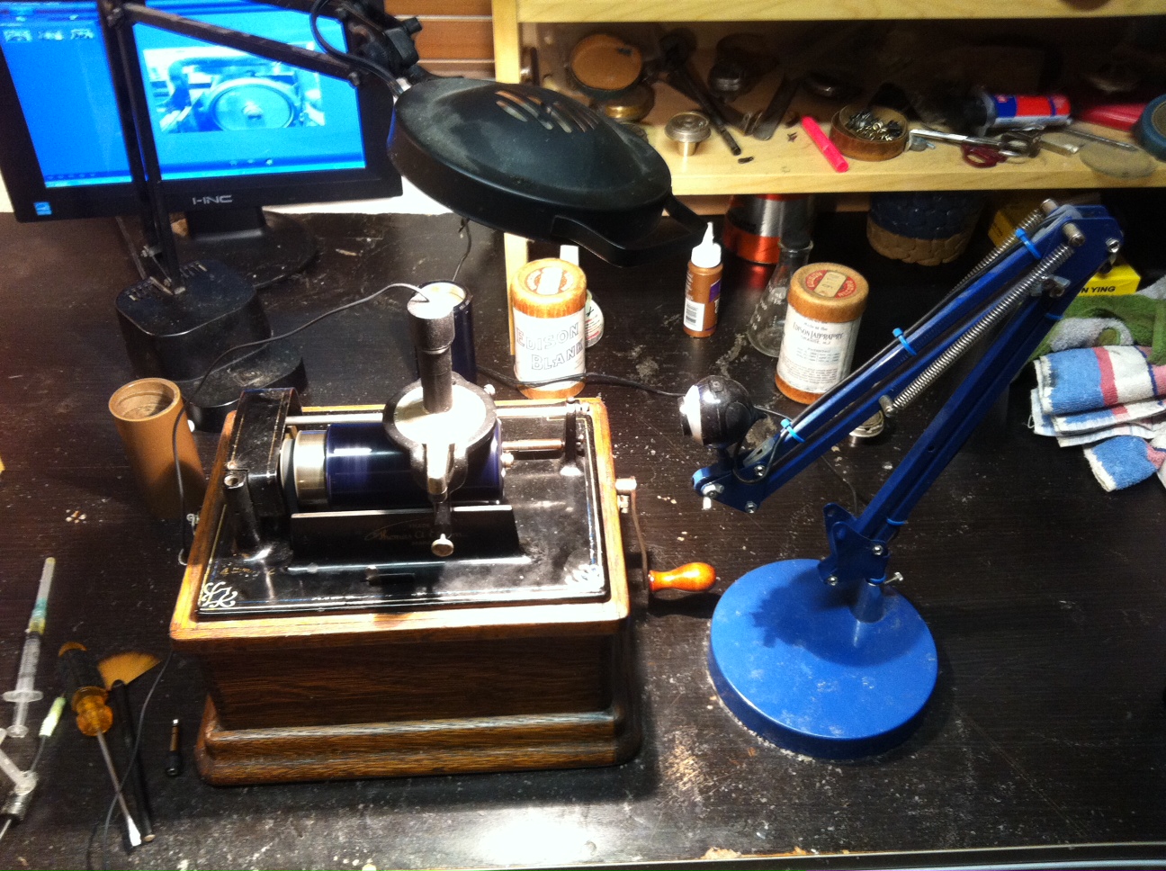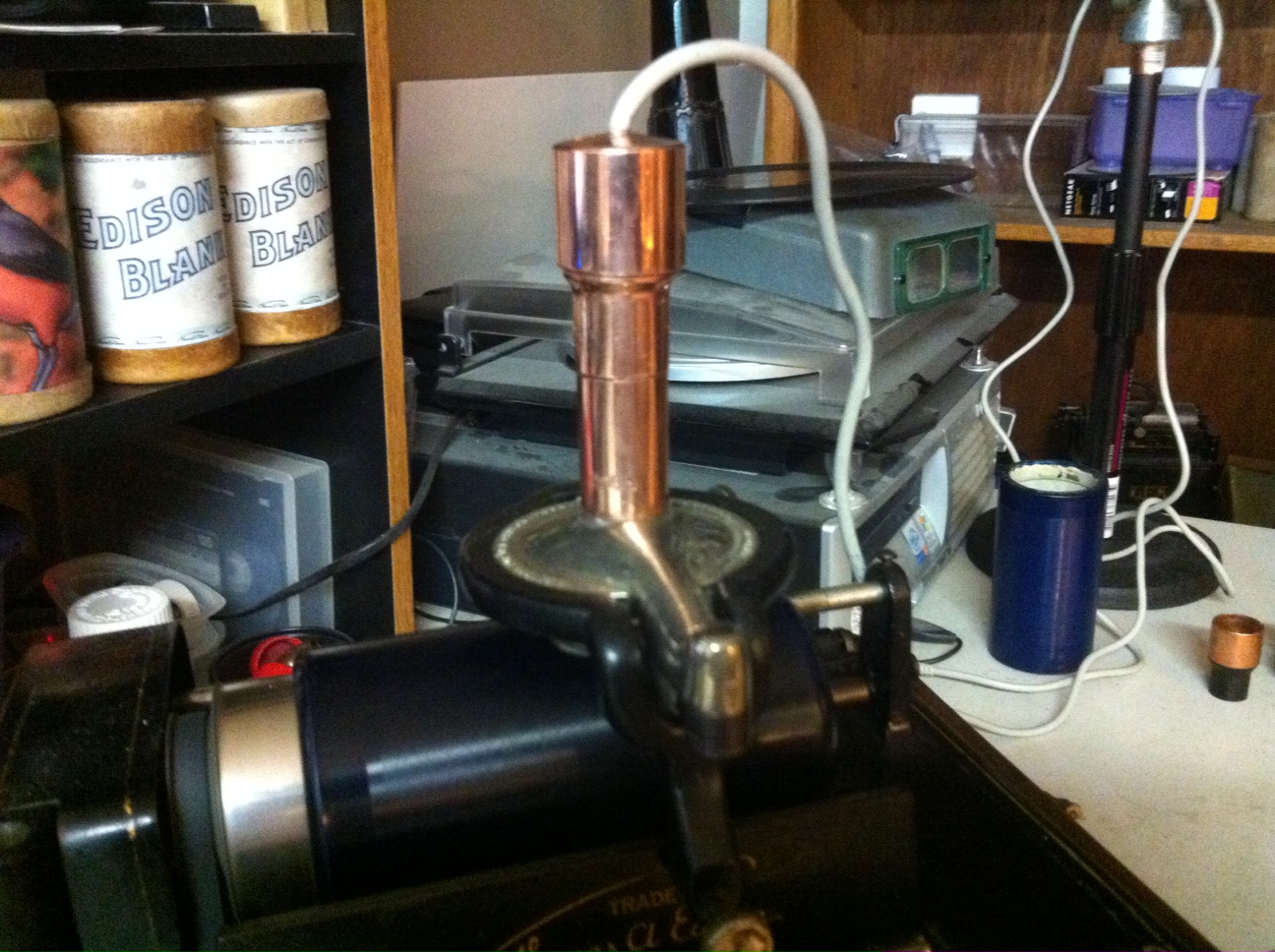 ik ben al een tijd bevriend met benjamin canaday in california hij heeft op youtube een kanaal genaamd the victrola guy en ben heeft iets uitgevonden voor het opnemen van wasrollen direct van een edison fonograaf