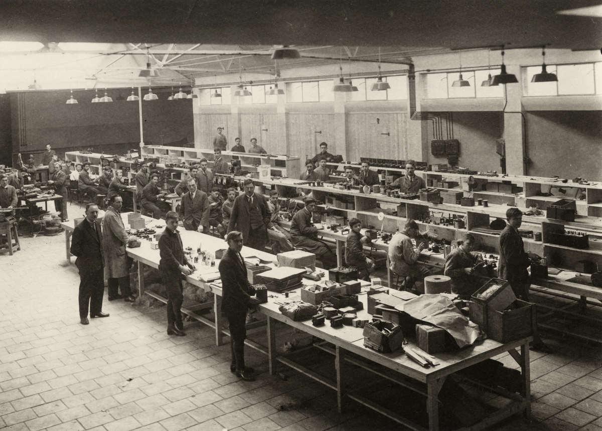 "Transforma" Radiofabriek (aan de nieuwe locatie) de Nieuwe Uilenburgerstraat 40 te Amsterdam, Nederland 1927. Foto: Interieur van de nieuwe fabriek.