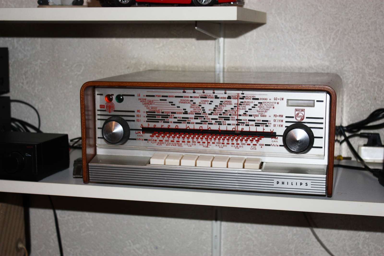 Flitsen is een vak op zich. Als je dicht op het onderwerp zit (zoals bij een radio) is het uit den boze, je krijgt al gauw fletse plekken en rare reflecties. Ook zie je gegarandeerd de schaalverlichting van de radio niet meer.