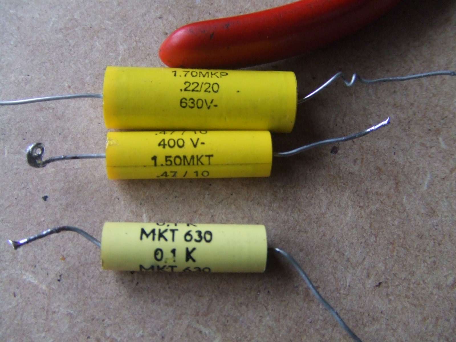 Maar gezien het formaat van de condensator houd ik het hier op 100 nF