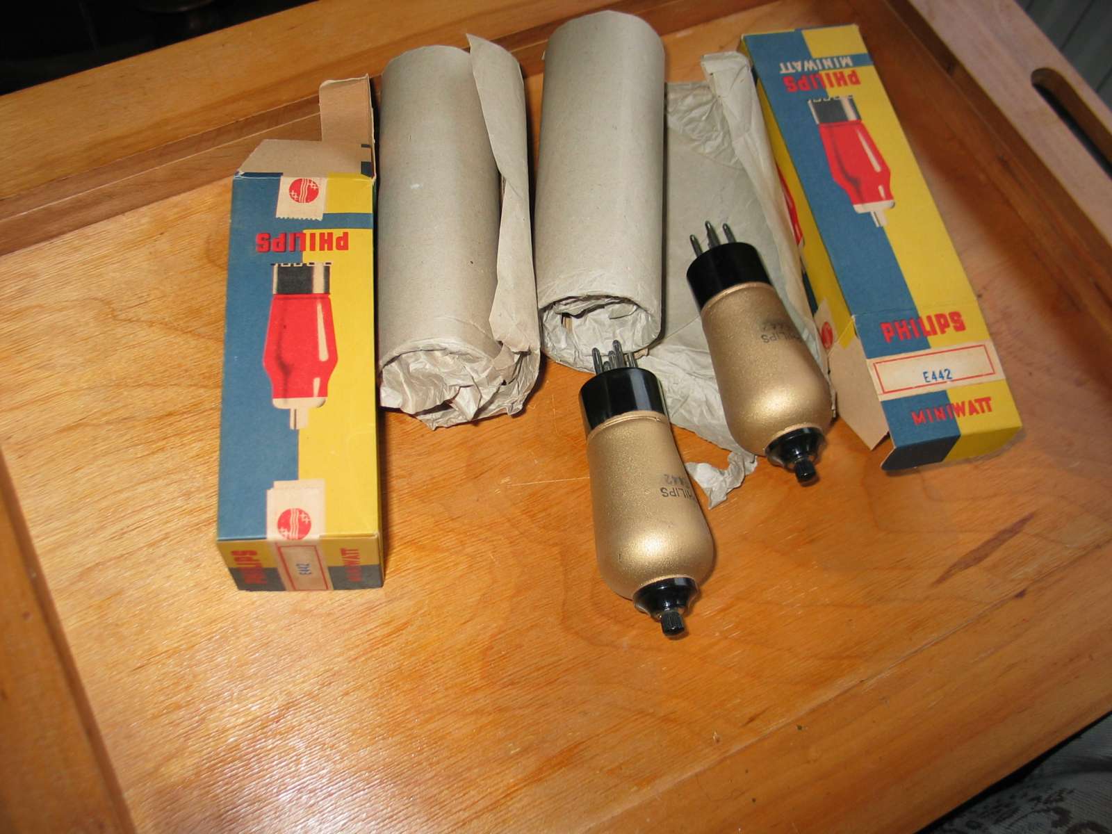 E442 buizen tegengekomen voor een schappelijke prijs. De meeste van deze lampen zijn na 80 jaar versleten, maar geven best nog wel geluid in een oud toestel. Maar geluid geven of klinken zoals