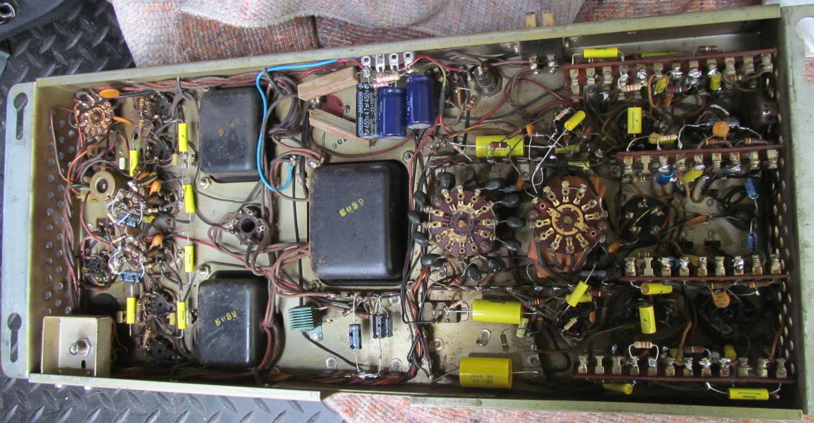 Zaterdag in Deventer van Bert ook nog een versterker meegekregen van een Seeburg jukebox. Deze moet door Peter B. (Als jukebox specialist) verder nagekeken worden. Mij is onbekend wat er nog mee aan de hand is. Toch was ik wel nieuwsgierig en heb even wat foto's gemaakt. Ben ook wel benieuwd naar het schmema en wat de klacht nu precies is.