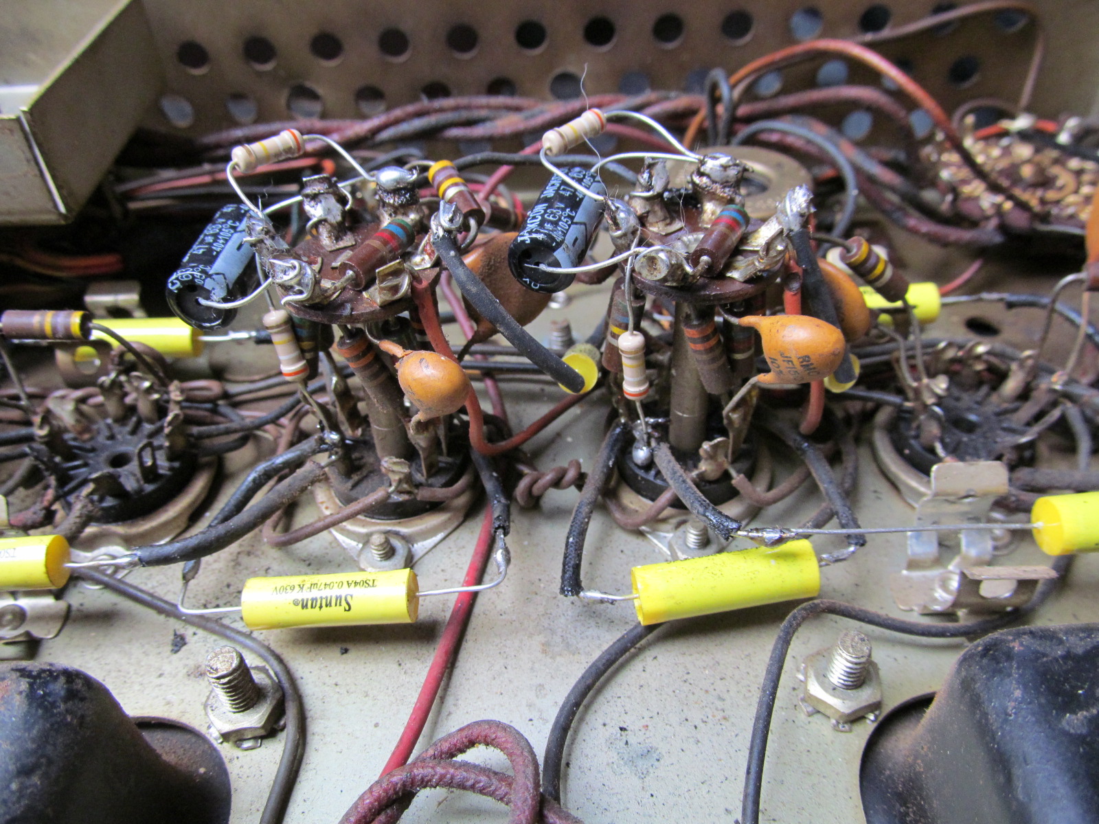 De contacten van de onderste 12AX7 buisvoet van channel 2 heeft ook wat aandacht nodig geluid rommelt als je de buis beweegt.