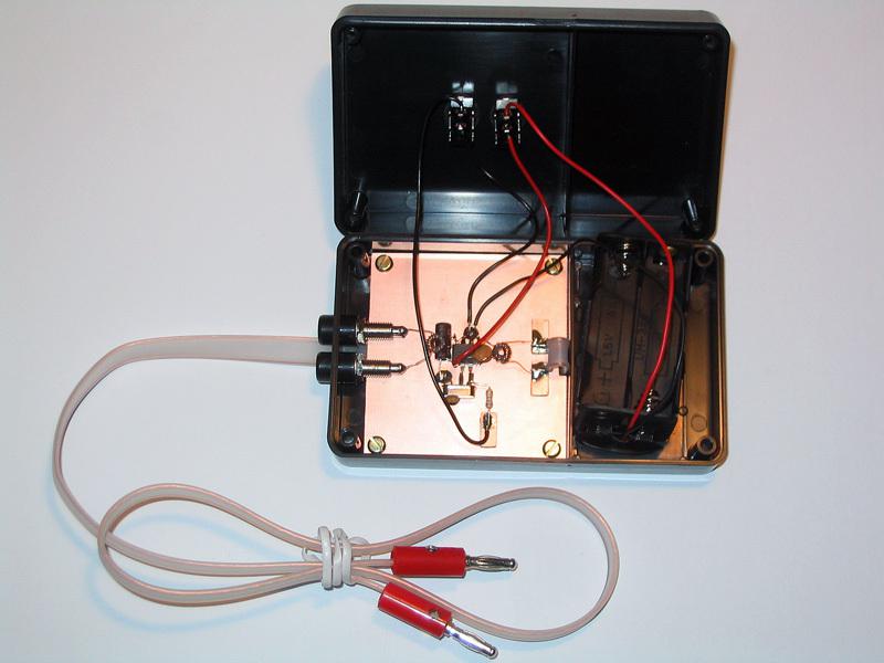 Het geheel is gemonteerd op een printplaat je en in een kastje gemonteerd.