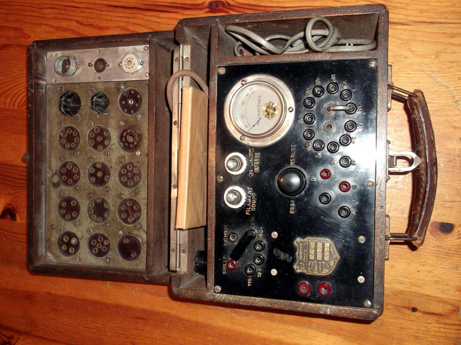 Er staat altijd een heer, aan de straatzijde op een hoek ergens, met een zeer imposante zelfgebouwde buizentester. Naar ik meen gevoed op accustroom en weliswaar bedoeld om aankopen te testen, maar voor een paar meegebrachte buizen draait hij vast zijn hand ook niet om.