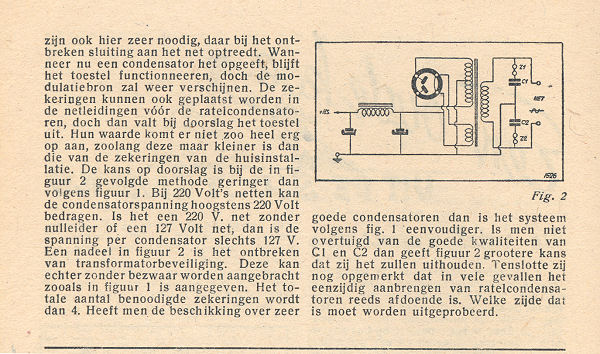Het in geleiding gaan van de gelijkrichtbuis of (diode)geeft iedere sinus een stoorpiek op het net welke met een ratel c gedempt wordt.