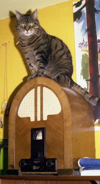 Maar een oude radio is ook nog niet zo makkelijk om op te klauteren...