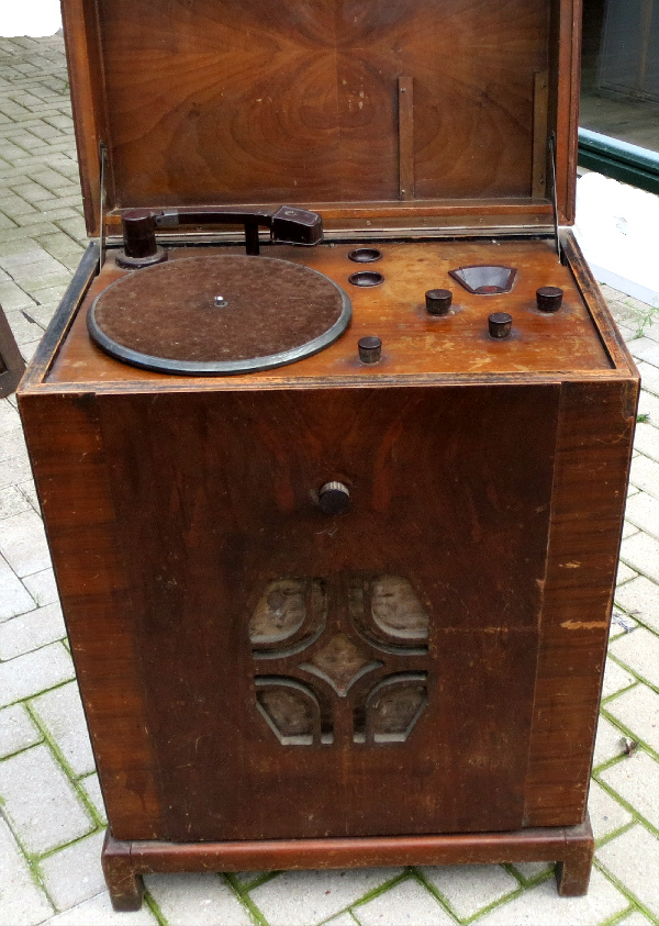 ik heb alleen twee pennelampen en het afgeleefde Philips 572A meubeltje gekocht. Kon het niet laten, en na wat afdingen was de prijs uiterst gunstig. Volledig in originele staat. Deze gaat voorlopig de opslag in voor later herstel. Het was eigenlijk niet de bedoeling nog een meubeltje bij te kopen... Van Michiel kreeg ik nog een verrassing, bedankt Michiel !