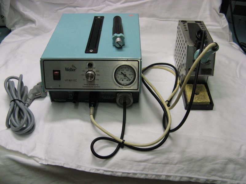 Tijdens een grote verhuizing van deze opdrachtgever kwam veel oud spul uit vergeten magazijnen. Zo ook deze mooie Weller de-soldeer station. Type VP801EC. Omdat ik al enige jaren rondloop bij deze mensen en wel goed kan opschieten met bepaalde lieden aldaar, kreeg ik dit mooie station in de handen gedrukt, onder het mom: Wij solderen al jaren niet meer.... Neem maar gauw mee.
