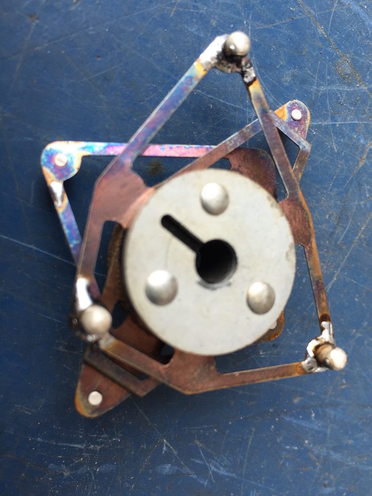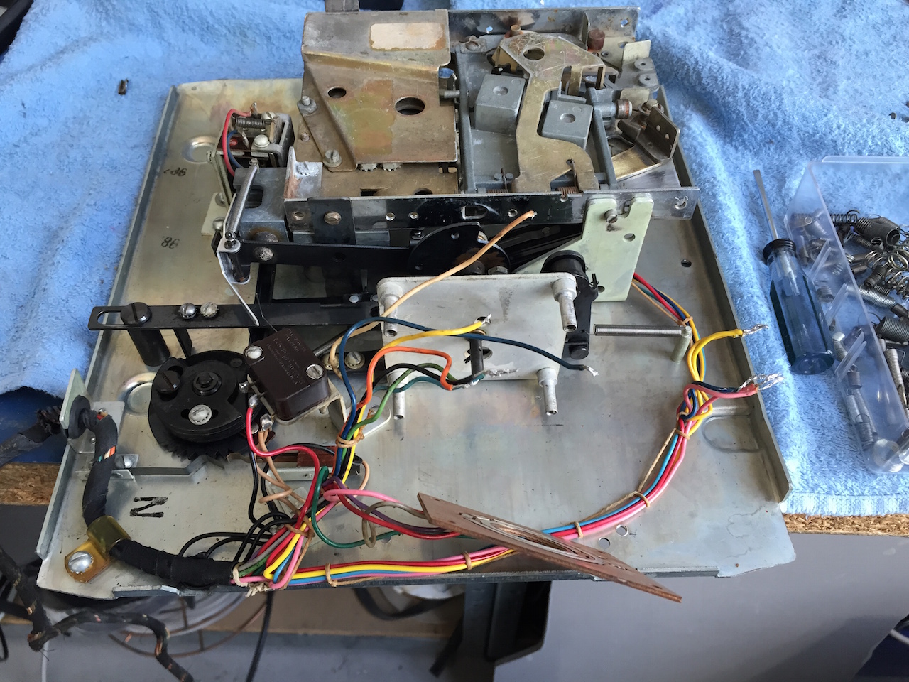 De criditunit van de 1700, je ziet hier het motortje waar de vlinder op hoort en het contactplaatje waar de contacten op lopen: