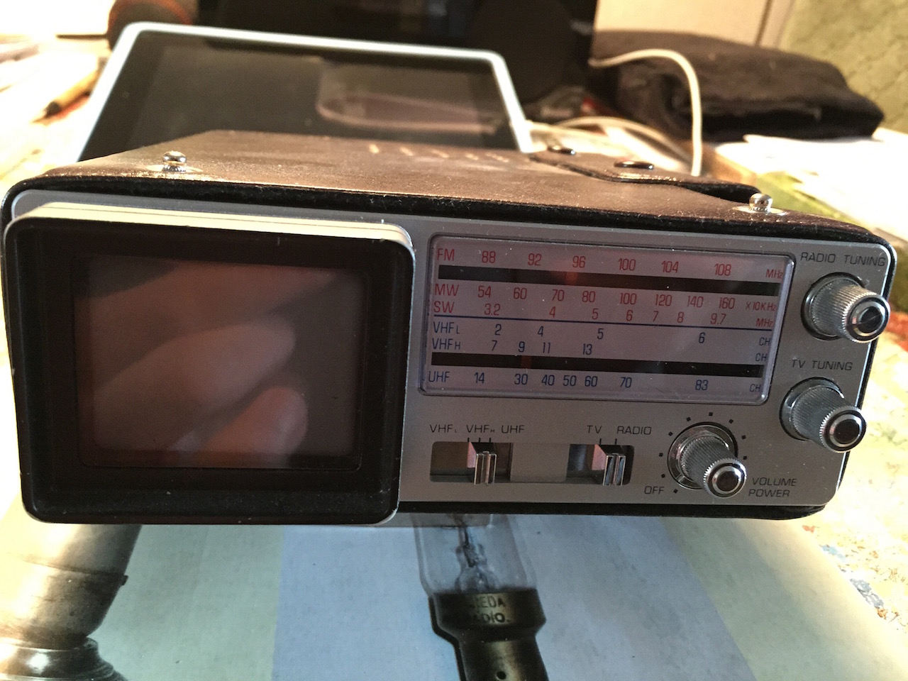 Ik heb hier ook zo'n radio/t.v.-tje met zo'n klein beeldbuisje. Het merk is Broksonic en het type is CIRT-2097. Ik heb hem zelfs speciaal opengemaakt en het lijkt sprekend.