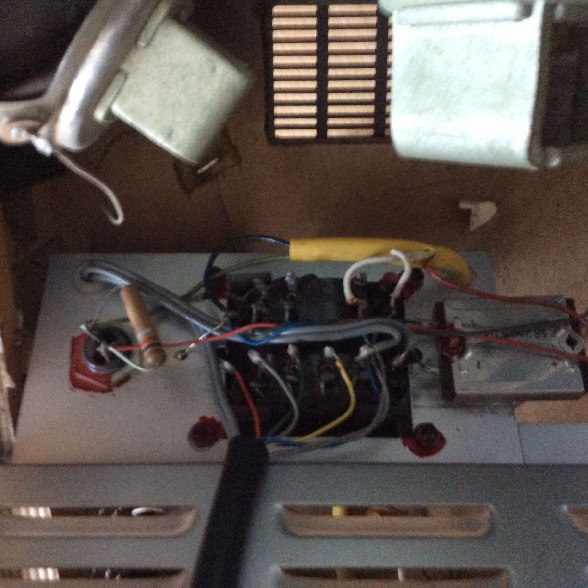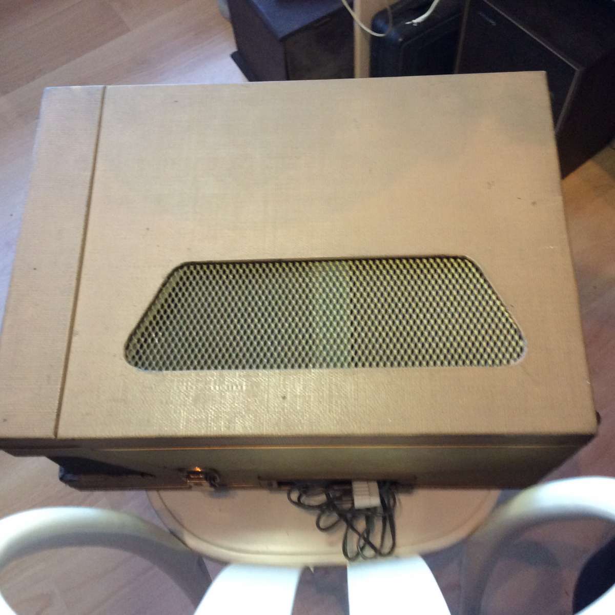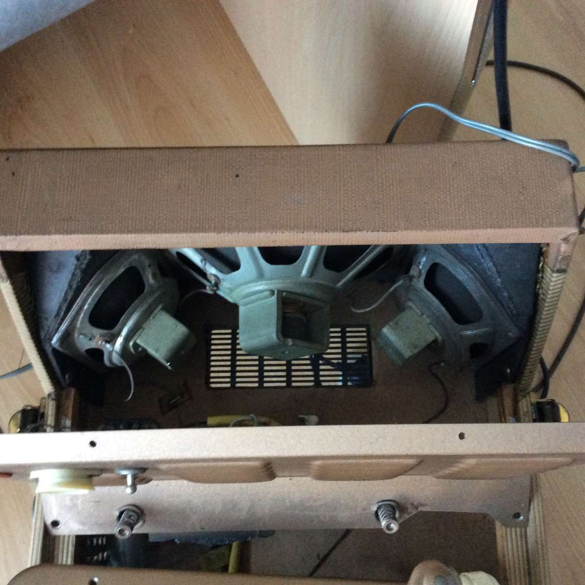 Er zitten in de versterker 3 x ECC83 en 2 x EL84 met 1 UGT in. De gelijkspanning komt van een seleniumcel.