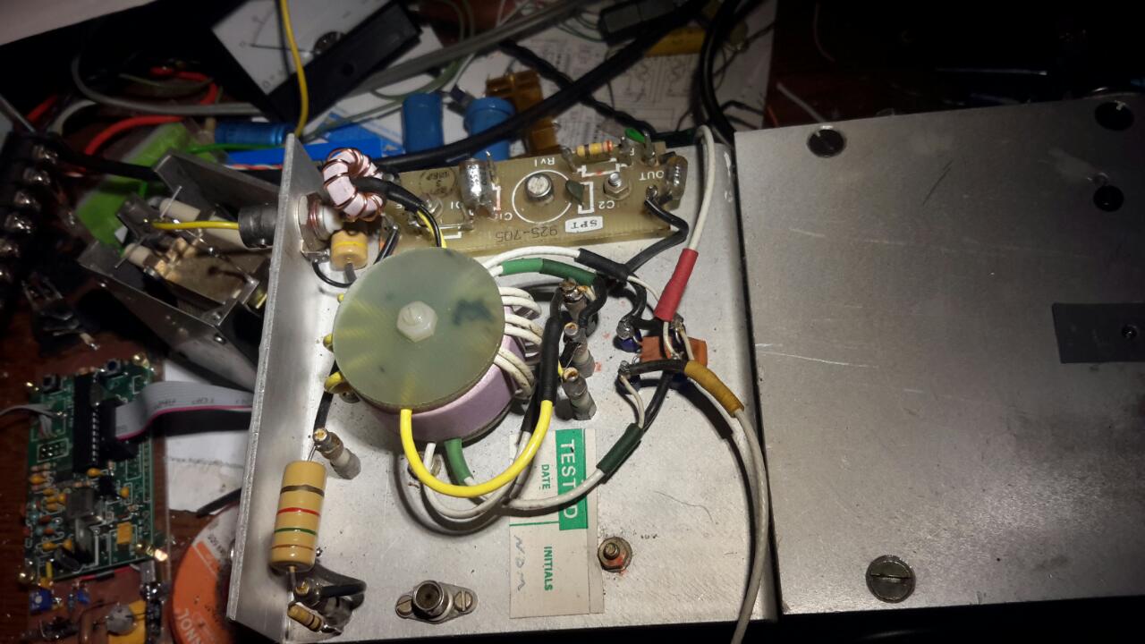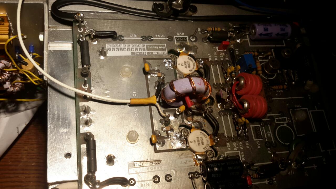 Hier komen twee Pa's samen ( grijs / wit )met meteen de 50 Ohm uitgang erop gewikkeld..(geel)