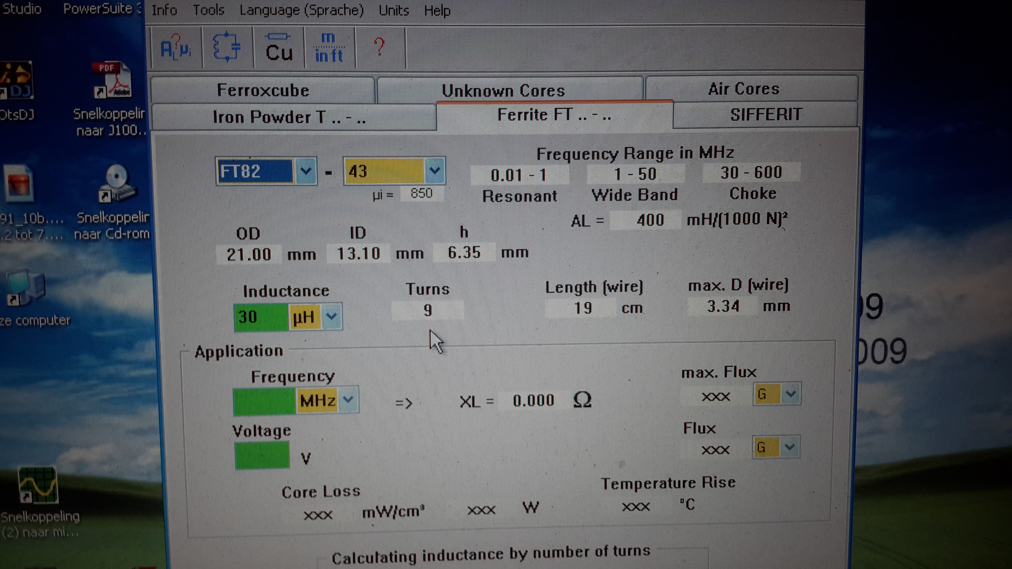 Geen ijzerpoeder kernen gebruiken.. Daarvan is de hoogste waarde 70 u... te laag dus..
