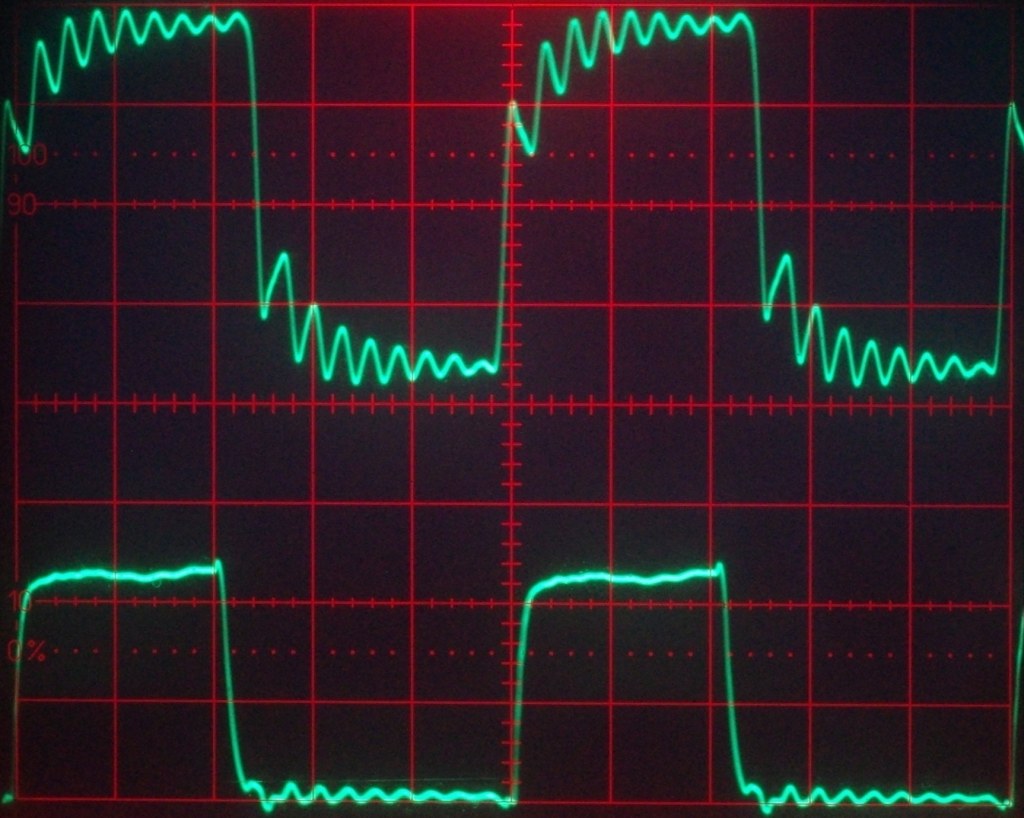 Ik zit met de IRF 510 ongeveer met 30 volt op restcarrier level en probeer met 40 volt daar bovenop de PWM uit te sturen.