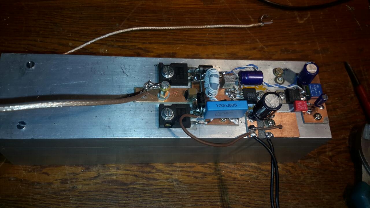 Eindtrap geeft nu bijna 400 Watt carrier... Zonder externe koeling !!