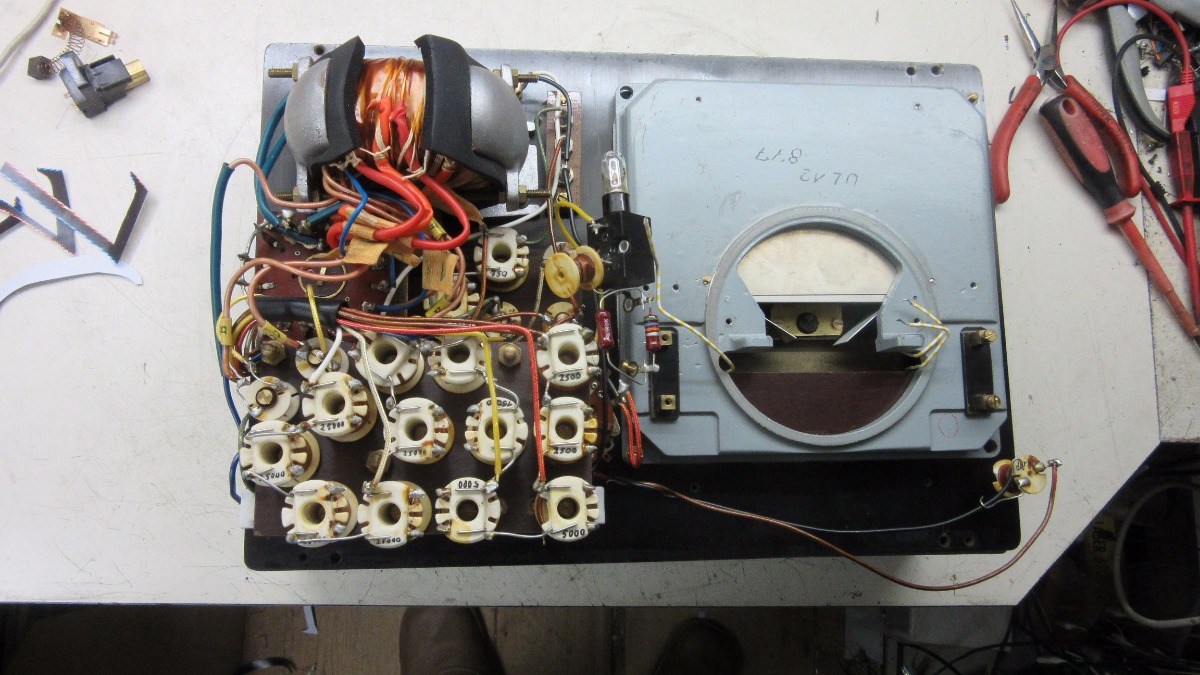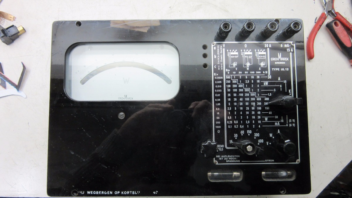 Werken zal het apparaat voorlopig niet, tenzij ik met zeer veel engelengeduld de draaispoelmeter gerepareerd krijg.
