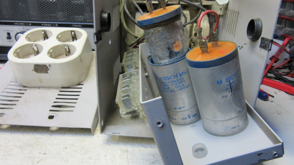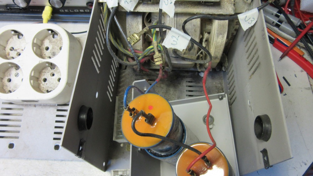 De condensatoren samen met de extra wikkelingen moeten de netspanning stabiliseren, volgens de fabrikant tot 1%.