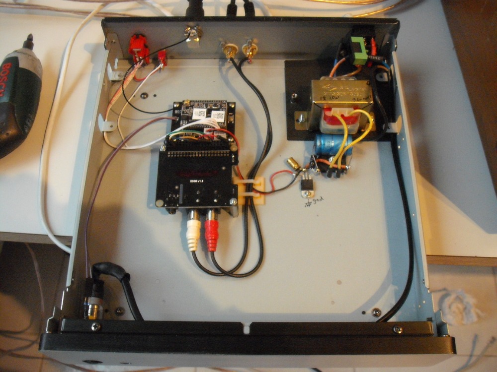 In een oud cd spelerkastje zit deze print,een 5 volt analoge voeding, en een ESP Dac (15€)