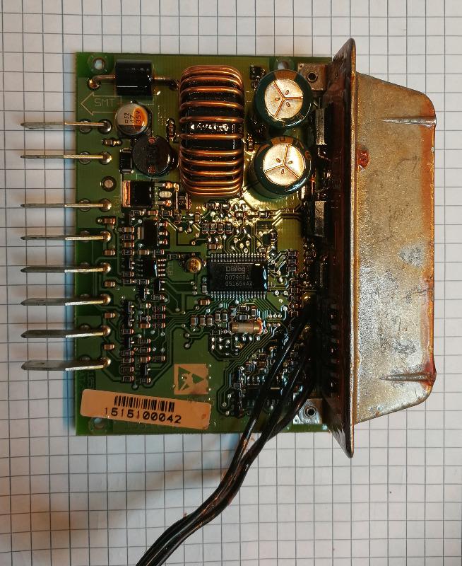 Hierbij een plaatje van de print. De motor is een 12VDC type en trekt 4,5A. Het is een 3 fase\punt aansluiting, dus de motor heeft geen Hall sensor. De voorloper was een 4 punt aansluiting waarvan de hallsensor in een Collpits osc. werd verwerkt.