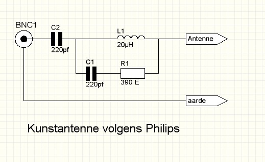 Bij Philips zit dit schakelingetje er tussen om een langdraad antenne te simuleren :