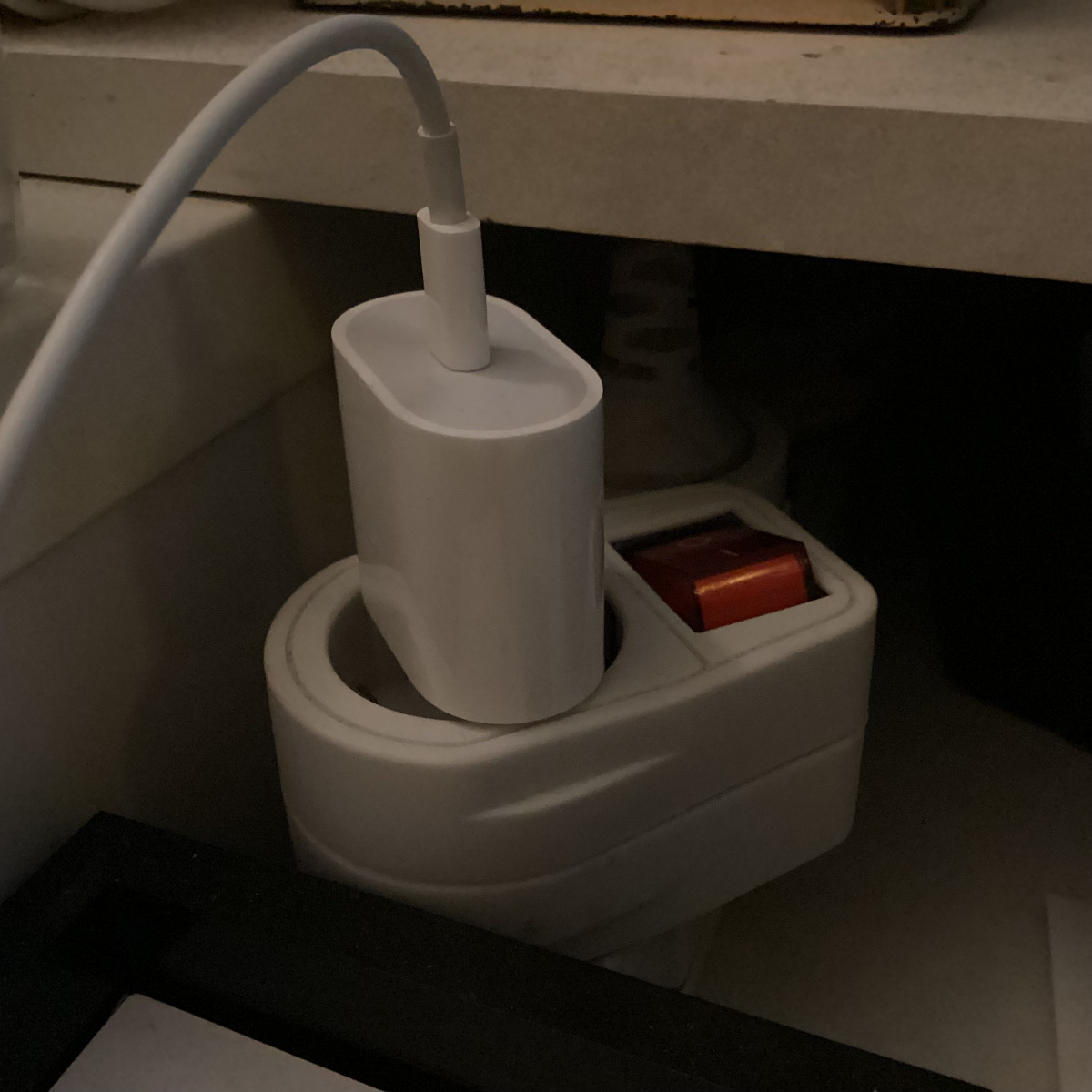 Een nieuwe Apple adapter kostte mij vorige week 19,90 en een originele kabel van twee meter 14 euro (extra lang dus). Ik heb er her en der enkele in huis, permanent in het stopcontact maar wel op de volgende manier, zo grijp ik nooit mis. Opladers moet je immers ook delen met de ander(en) in huis.