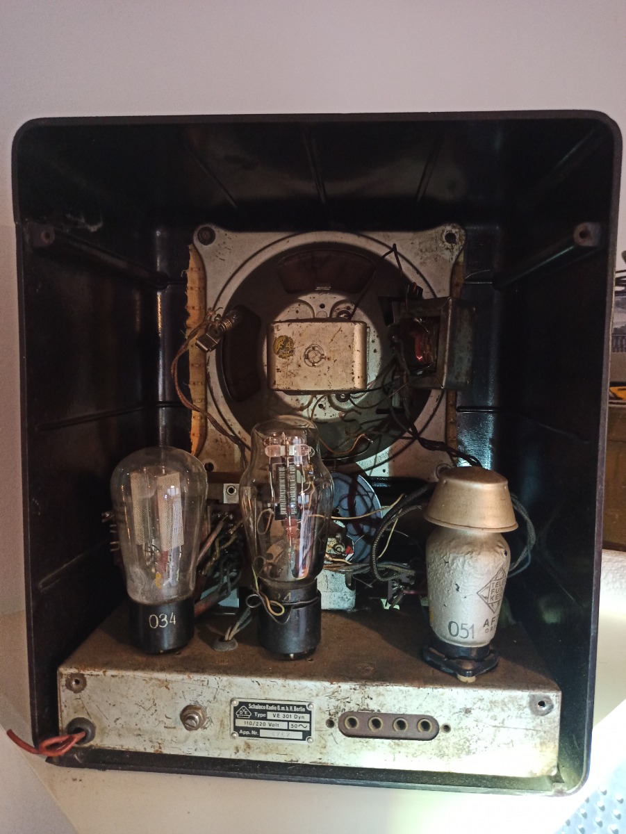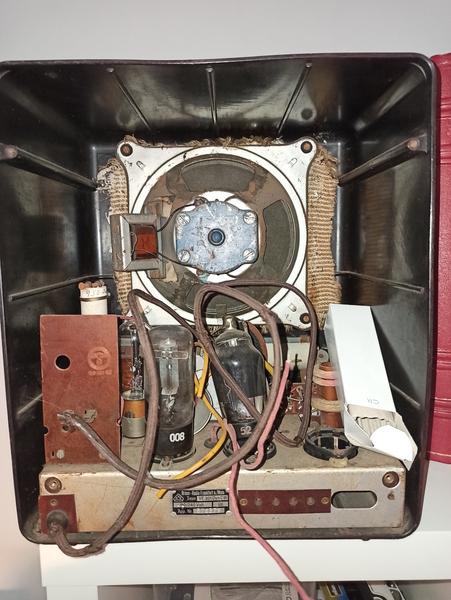 Onlangs heb ik 2 volksontvangers aangekocht zonder voorkennis. Nu blijkt dat er in beide wel wat modificaties gebeurd zijn. in de DynGW zit een andere lamp en lampvoet en ontbreekt de VF7 . In de Dyn zit ook een andere lamp in. Knoppen kloppen niet en ringen rond schakelaars ontbreken. Mjah 'what is done is done' dom van mij. Niet tegenstaande wil ik ze toch werkend krijgen en de ontbrekende stukken vind ik wel. Wat ik raar vind is de spanningskeuze plaat van de DynGW. Deze is er wel, maar de keuzeschakelaar ontbreekt. Wel staat de adelaar erop. Is dit dan vast gezet op 1 spanning door de Firma Braun? Nergens vind ik hier een ander voorbeeld van. Het is enige tijd geleden dat ik nog een buizenradio gerestaureerd heb, dus alle hulp is welkom.