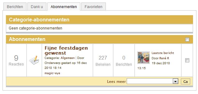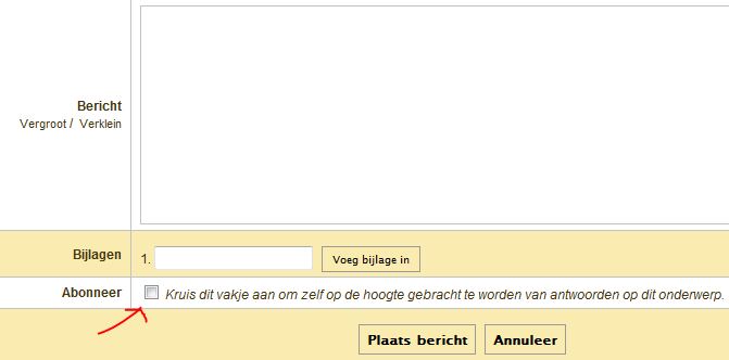 Dit houdt in dat u zich kunt abonneren op iedere discussie (draad), waarna u een emailtje ontvangt wanneer er een reactie wordt toegevoegd aan de betreffende discussie(s).