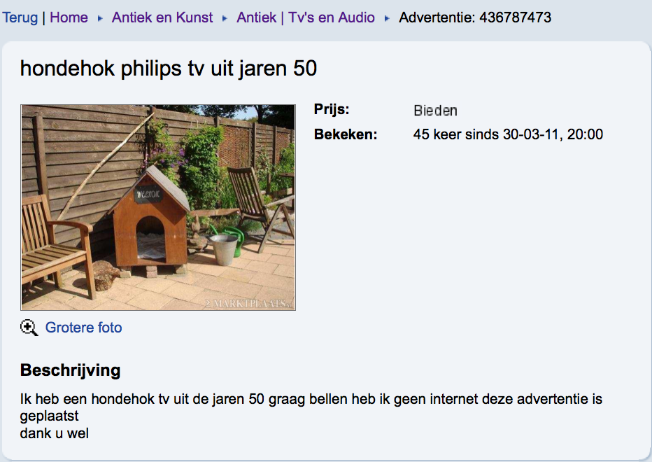Dat die meneer geen internet heeft is ook erg grappig.