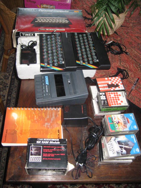 en verder 2 ZX Spectrum computers compleet met datarecorder en spellen/programma`s op casette en een module met uitbreiding van .....jawel 16K !!!!!