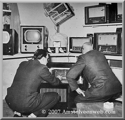Renee Ja, ik heb nog wel meer van dit soort foto's,cDe linker man ben ik niet, maar is wel een soort mentor voor mij geweest. Ik werkte daar al mijn vrije tijd om radio's en TV te repareren. De radiozaak bestaat nog steeds en is nu een B&O center te Amstelveen in het oude dorp, De naam is Firma koudijs. Ik werkte gelijktijdig ook bij de concurent radiozaak trooster. Ik geloof dat dat niet in dank is afgenomen Trooster had veel bekende Nederlanders als klant, Maxwoski, e.d daar heb ik ook nog een TV geinstalleerd met de nodige antennes op het dak.