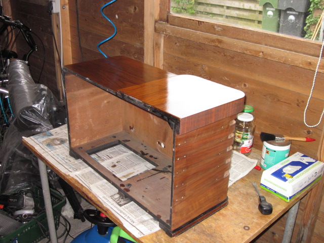 De voorkant van de 836A maak ik af zoals hij is. 100% glad zal hij niet worden, maar dat was hij toch al niet doordat de fineer niet 100% fris meer is.