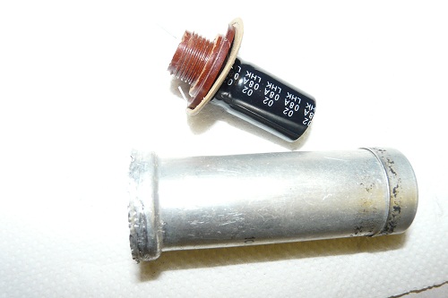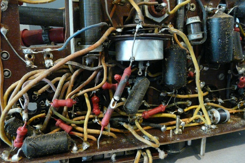 - een aantal van de teercondensatoren waren kapotgebarsten en enkele weerstanden gebroken.