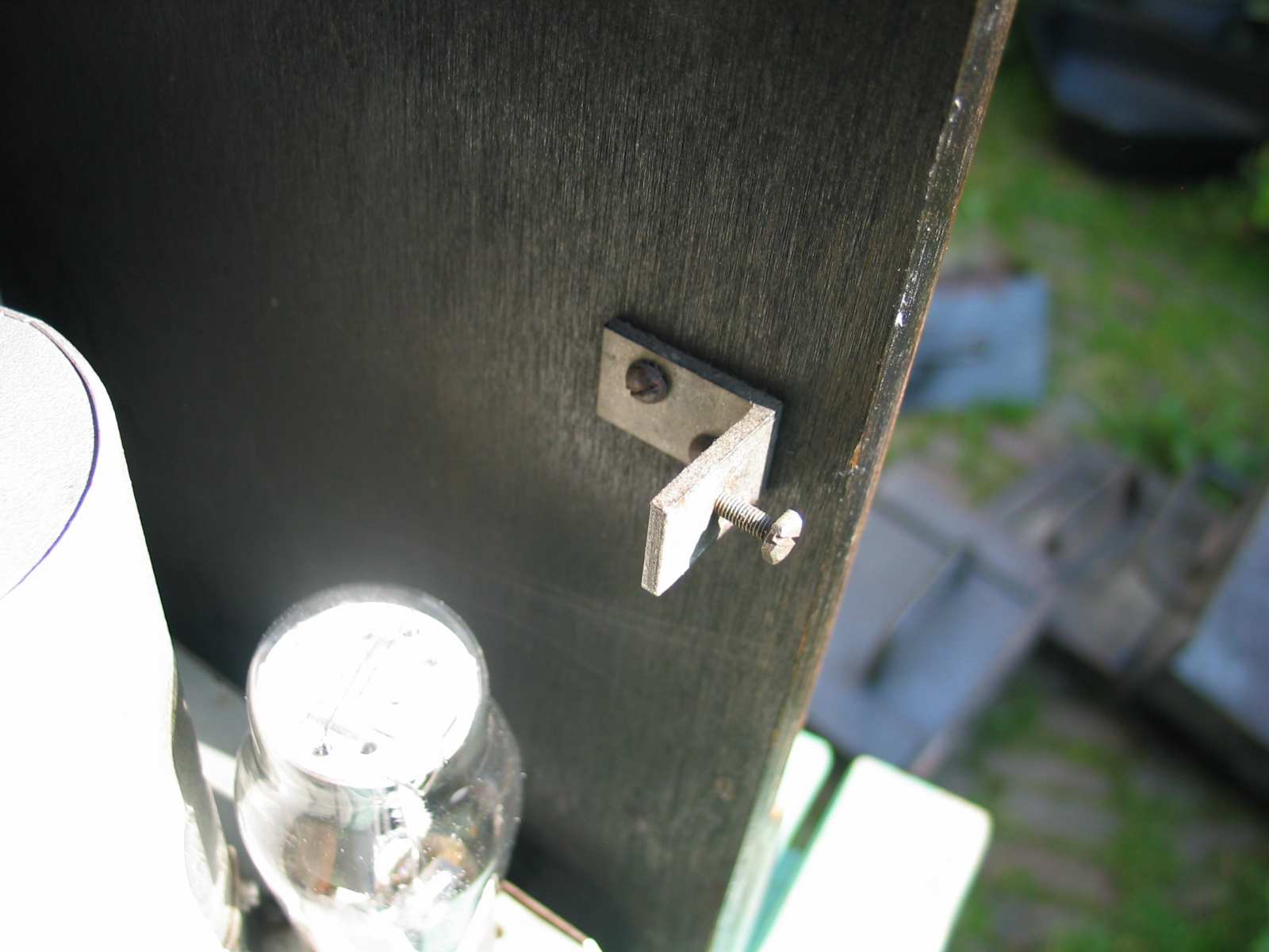 Bedankt voor je duidelijke foto's. Wat heeft de firma Van de Heem dan moeilijk gedaan om een schroef met veerring vanaf de achterkant in de hoekbeugel te draaien en er een kartelmoer op te monteren. Maar het is mij wel vaker opgevallen dat men daar vroeger geen probleem mee had. Het product moest gewoon degelijk zijn en er werd niet bezuinigd op een paar moertjes. Mijn Erres radio heeft dezelfde hoekbeugels:
