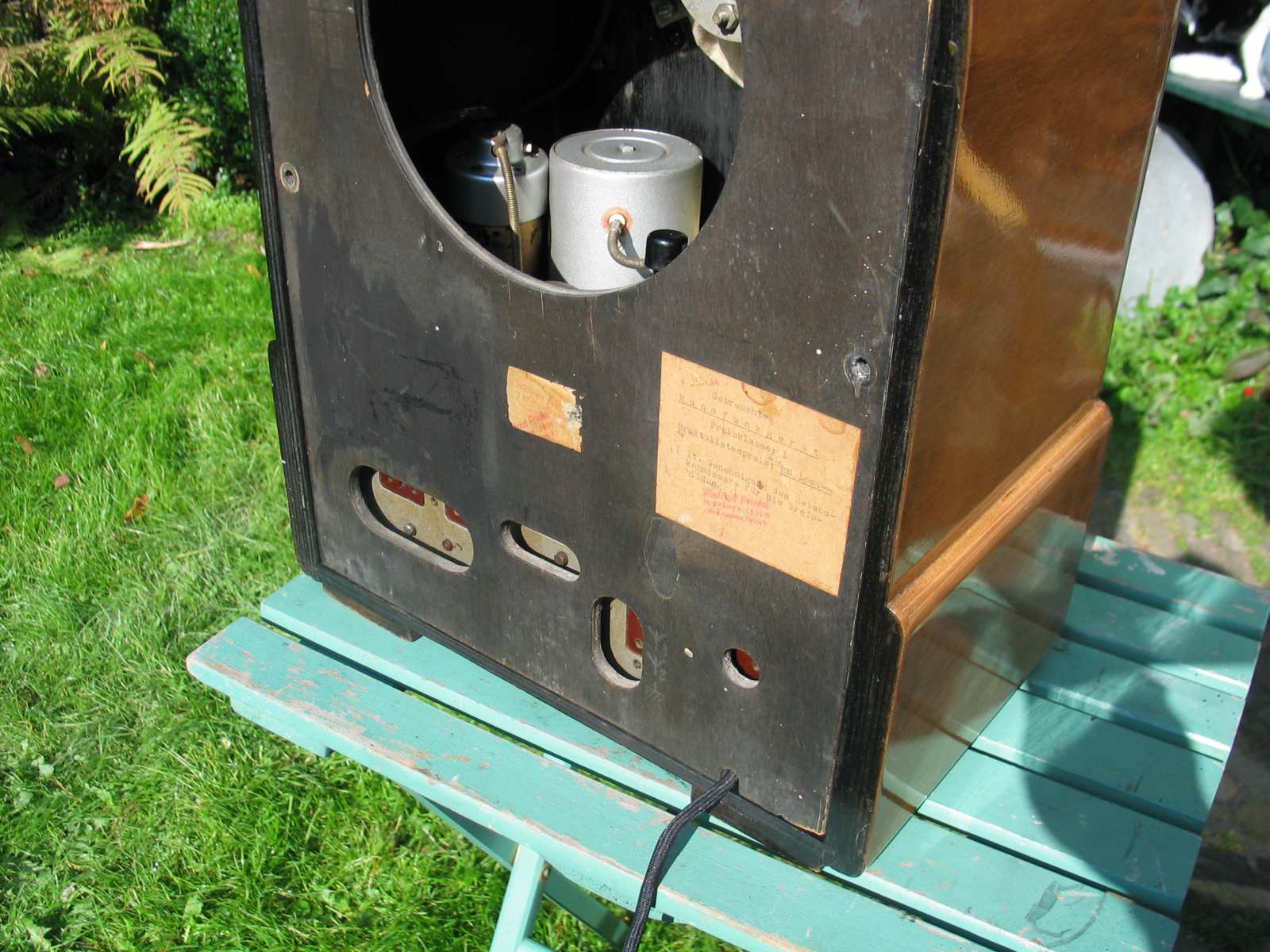 Dan hou ik het er maar op dat mijn KY126 origineel is en na de oorlog is teruggekomen vanuit Bremen. Ik had in het kader van de restauratie van de Erres nog even het idee om de achterwand over te spuiten, maar gezien de historische informatie die ik van je heb gekregen doe ik dat maar liever niet. Dat zou eeuwig zonde zijn, aangezien ik een dergelijk etiket op een tijdens WO2 naar Duitsland afgevoerde radio nog niet eerder heb gezien.