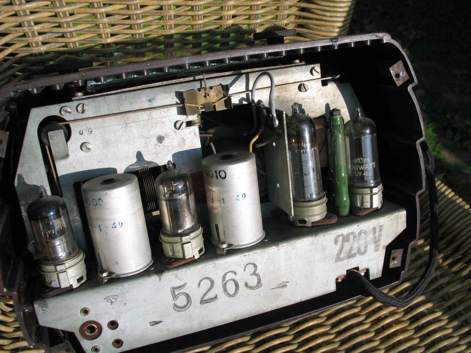 Het is aan de spoelbussen en opschriften te zien een echte Haagse Philips-nabouw. Hetzelfde chassis maar dan met Philipsonderdelen erop kwam voor in de BCH170U.