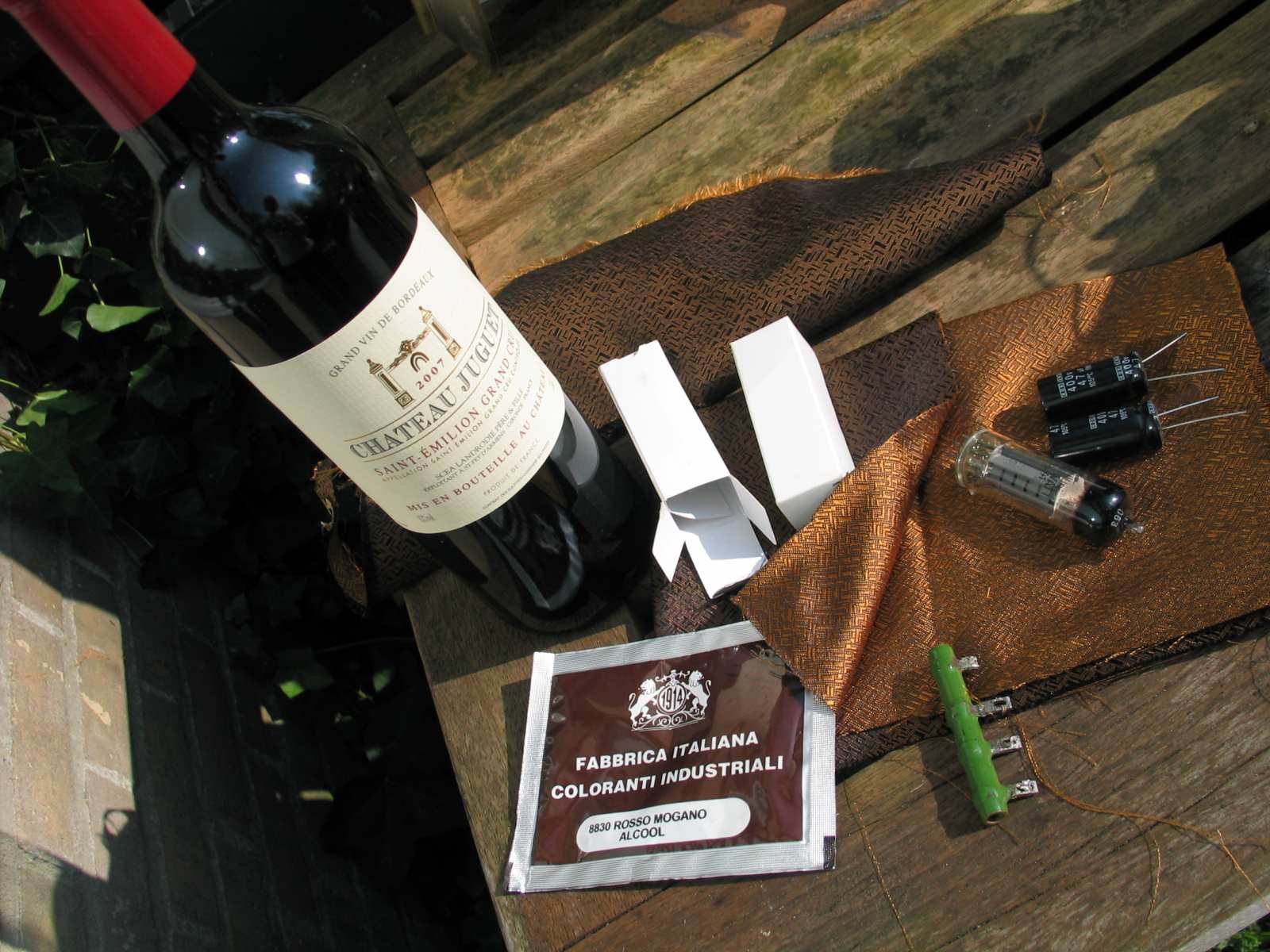 O.a. een prachtig BD&Co luidsprekerdoekje voor mijn 932A, een tweetal nieuwe UL41 buisjes en nog wat. De groene emaille weerstand voor de BX200U bleek helaas onderbroken. Had ik maar een ohmmeter meegenomen :banghead: .