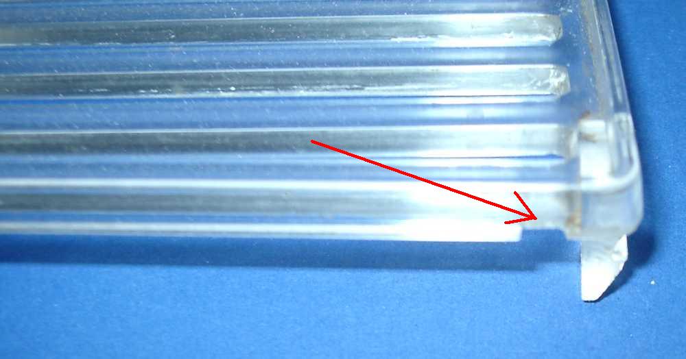 Onderaan het schaaltje/LSgrille bevinden zich 2 inkepingen links en rechts (foto).