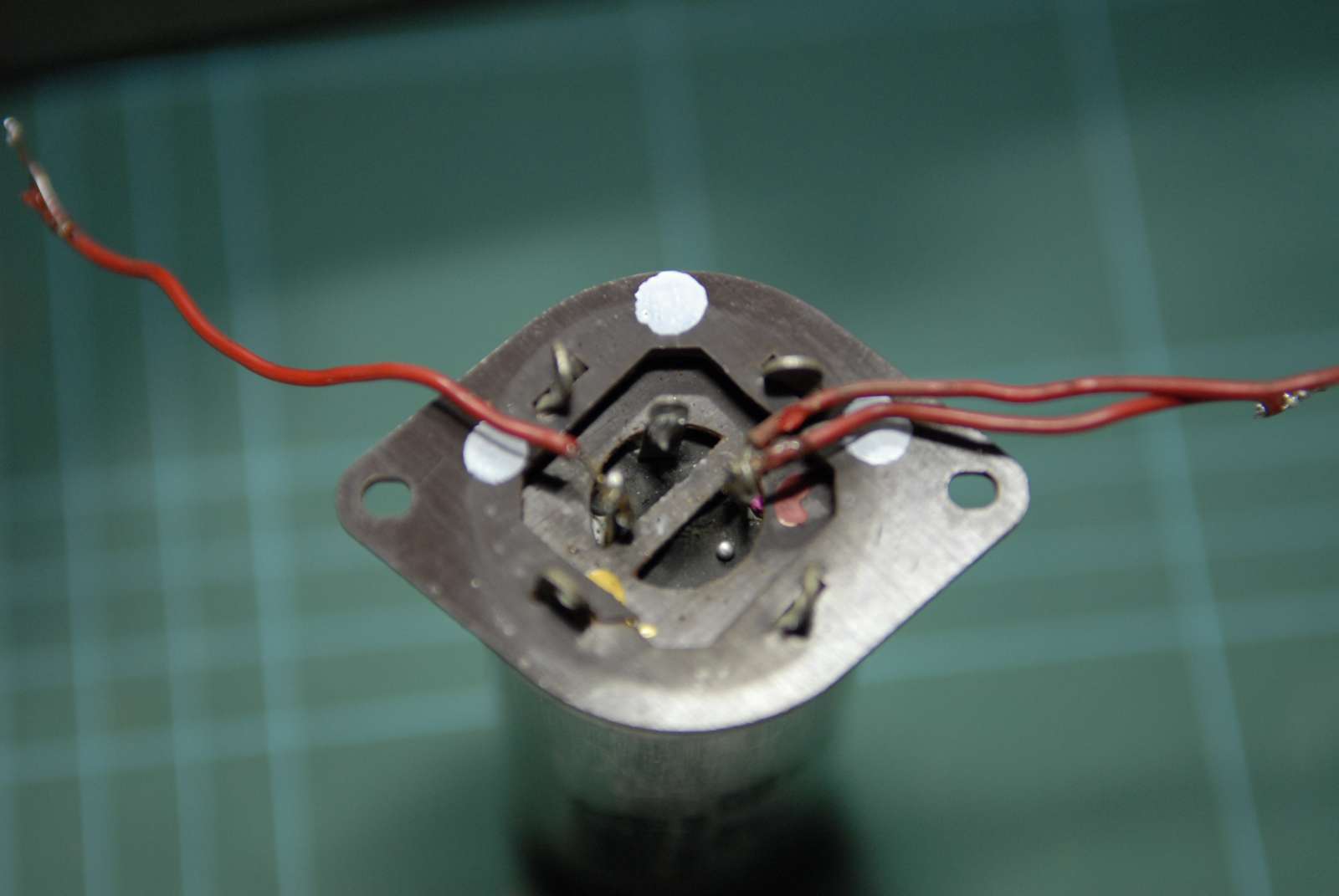 Het aluminium huis van de elco is namelijk de massa. De twee draden die aan de onderkant