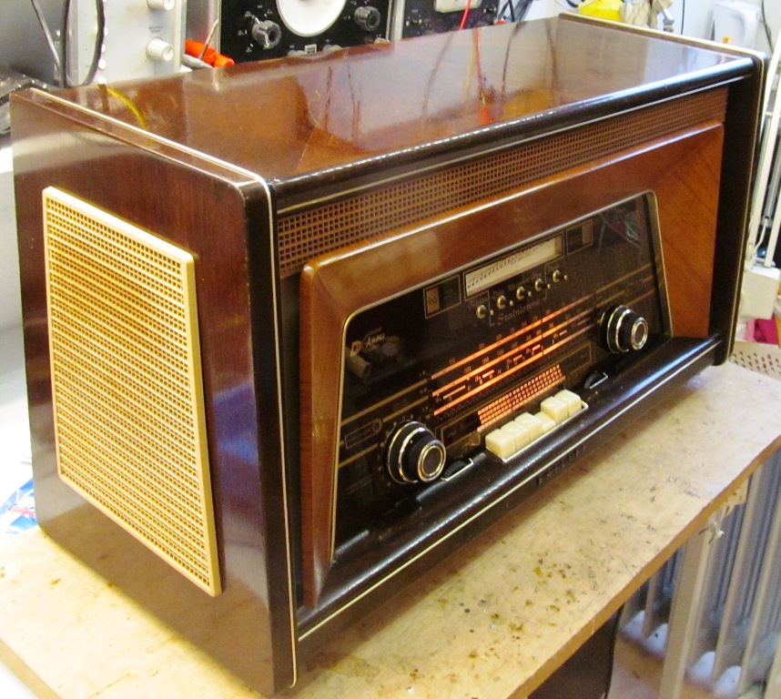 De radio is weer goed spelend gemaakt, alles gereinigd en de kast opgeknapt. Hier alleen het eind resultaat.