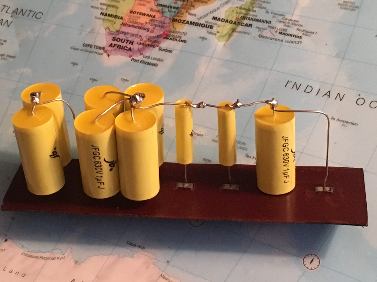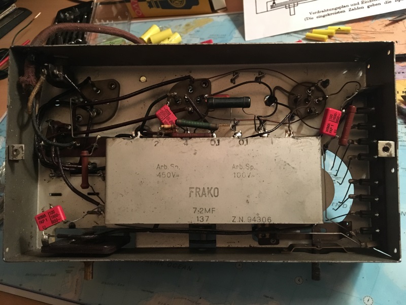 Dus, alles gedemonteerd en vervangen waar nodig. De weerstanden meten nog de juiste waarde, dus dat lijkt goed te zijn. De rode Wima condensatoren die ik heb gebruikt zijn misschien vloeken in de kerk, maar ik wil eerst weten wat de radio doet als alles weer op zijn plaats zit.